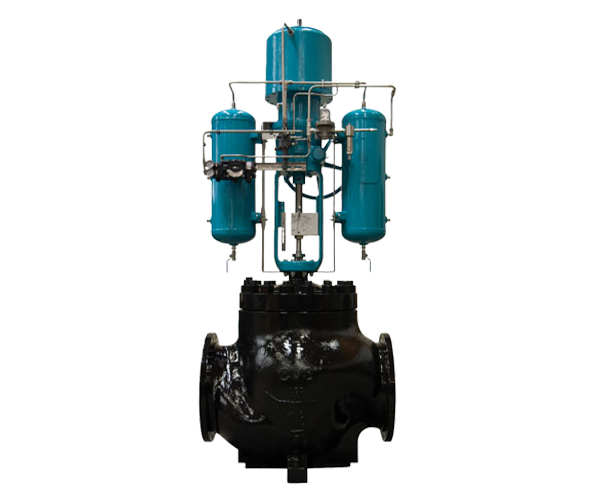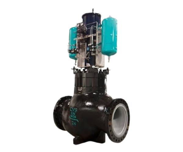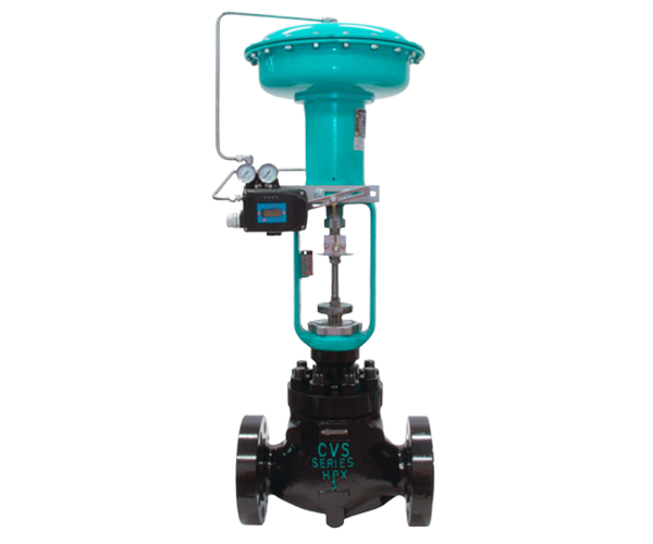 The CVS Series E is a single port globe-style body with composition or metal seats and a balanced “push-down-to-close” valve plug.